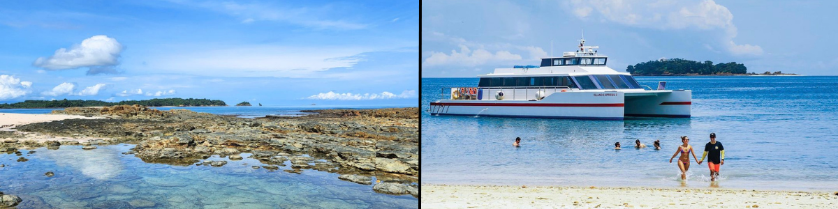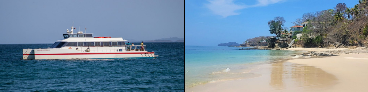 Depuis le causeway Amador, la compagnie de ferries est le moyen de transport le plus économique à destination de l'île de Contadora. Deux heures de navigation plus tard et après l’escale à Saboga, vous voilà arrivé pour débarquer dans une des magnifiques plages de Contadora, Playa Galeón, avec l’eau à mi-tibia.